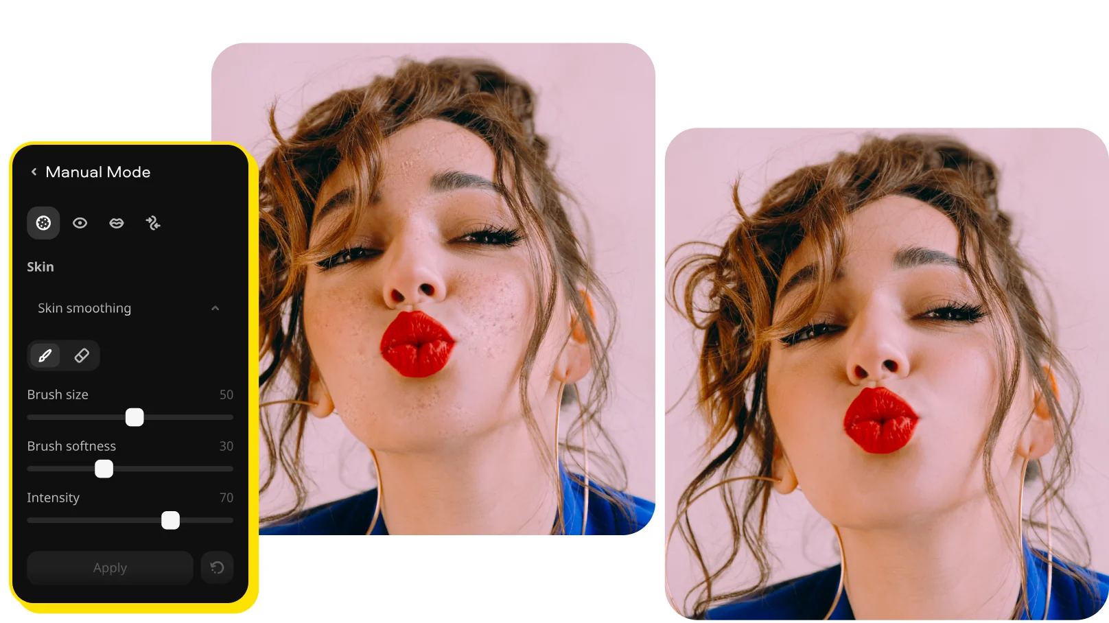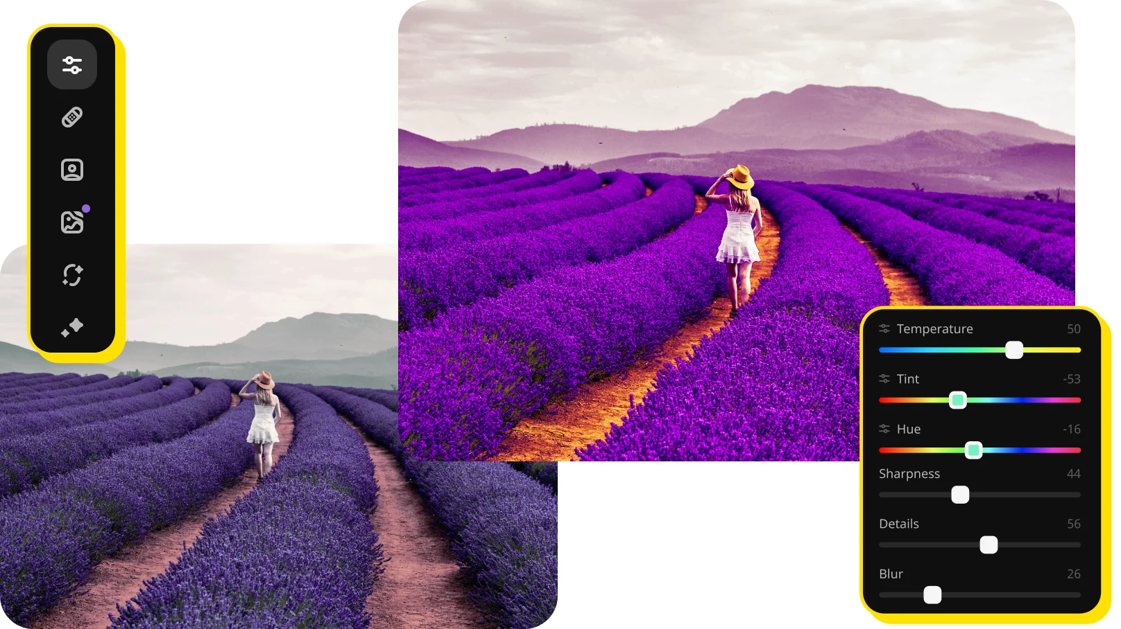 Get the clarity you want, from soft and smooth to crisp and detailed. Adjust sharpness, remove blur, and enhance texture in your photos for that perfect balance between sharp and natural.