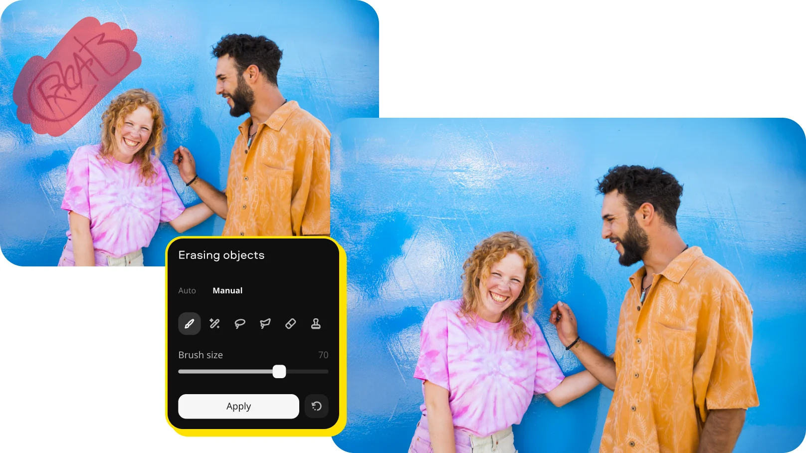 Erase unwanted elements in seconds – AI automatically rebuilds the background so your photo looks the way you want it to.
